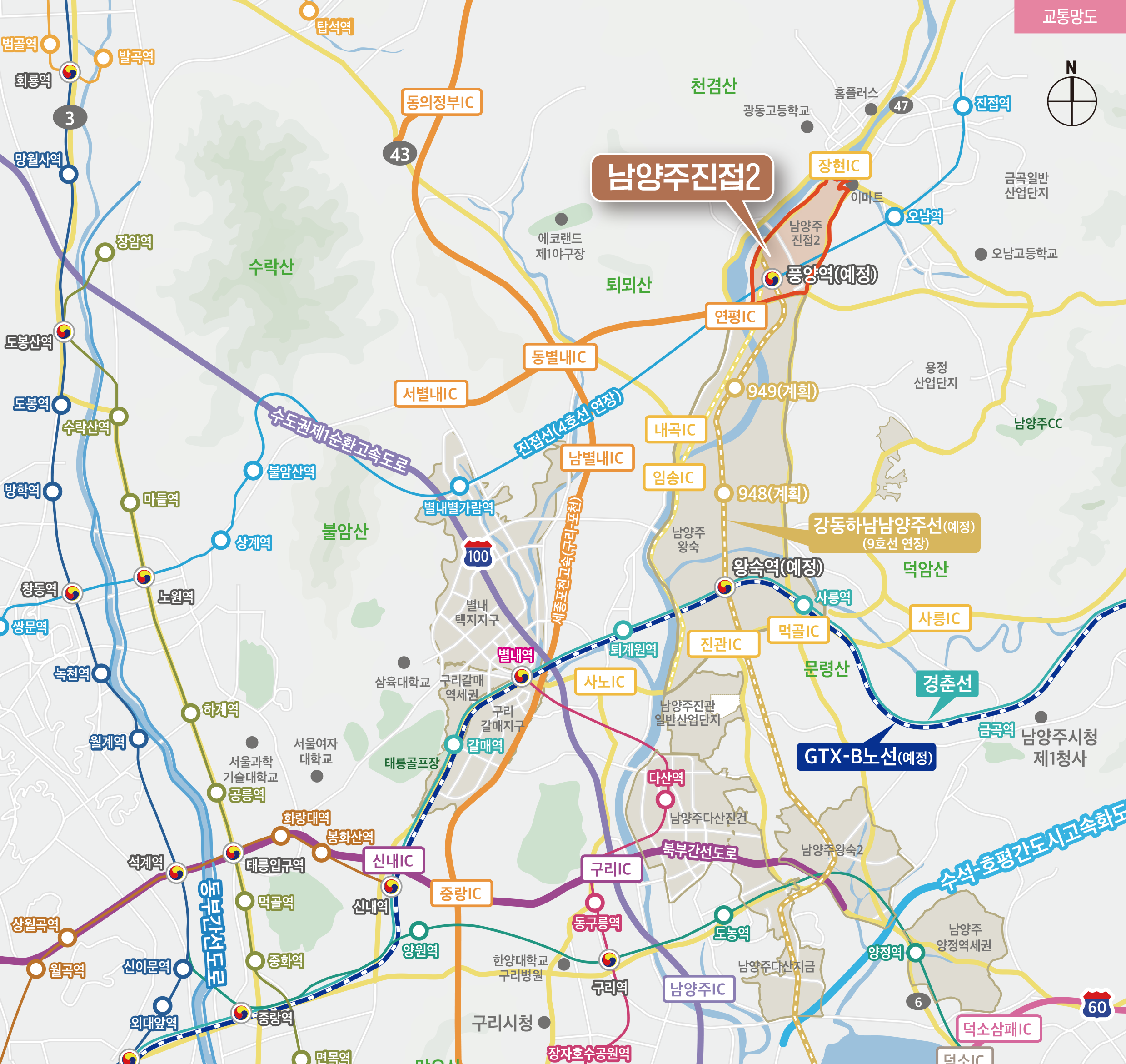 - ※ 향후 신설 예정(GTX 및 전철)인 교통망(노선 및 역사 위치)은 실제와 다를 수 있으며 변경될 수 있습니다.